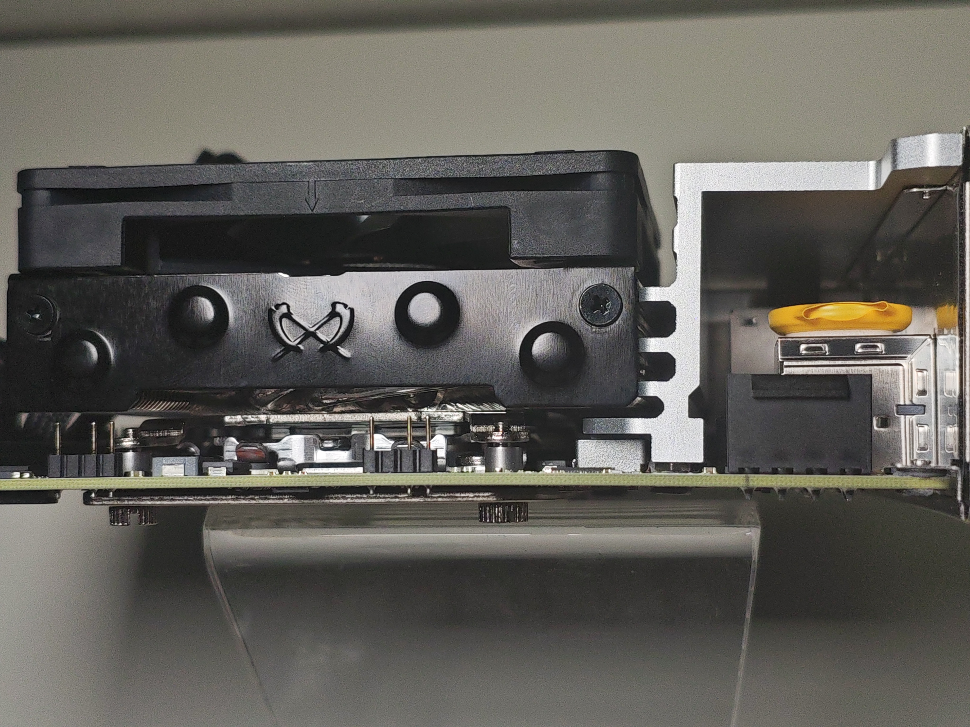 해당 쿨러들을 장착할 경우 사진과 같이 보드가 휘어서 장기적으로는 데미지를 줄 가능성이 있기떄문에,