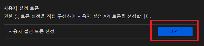 맨 아래 스크롤 후 사용자 설정 토큰 생성