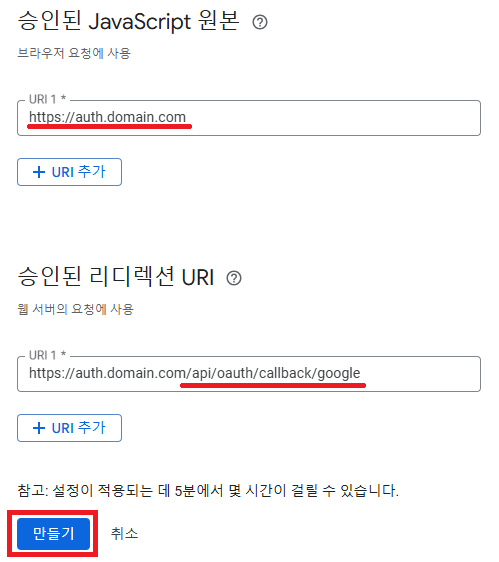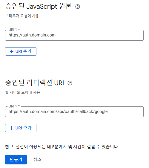 https://auth.본인의 도메인 의 형태로 하겠습니다.