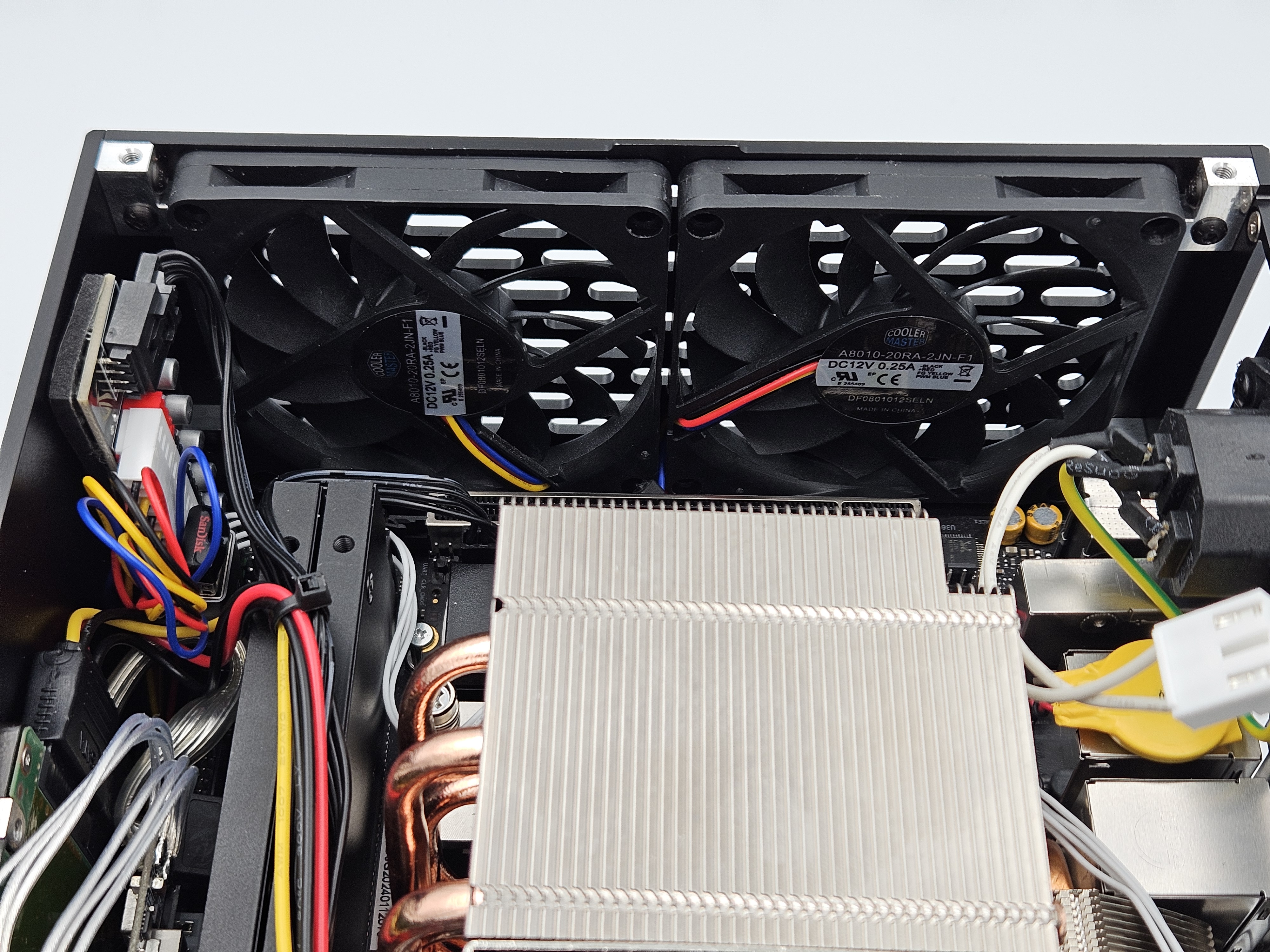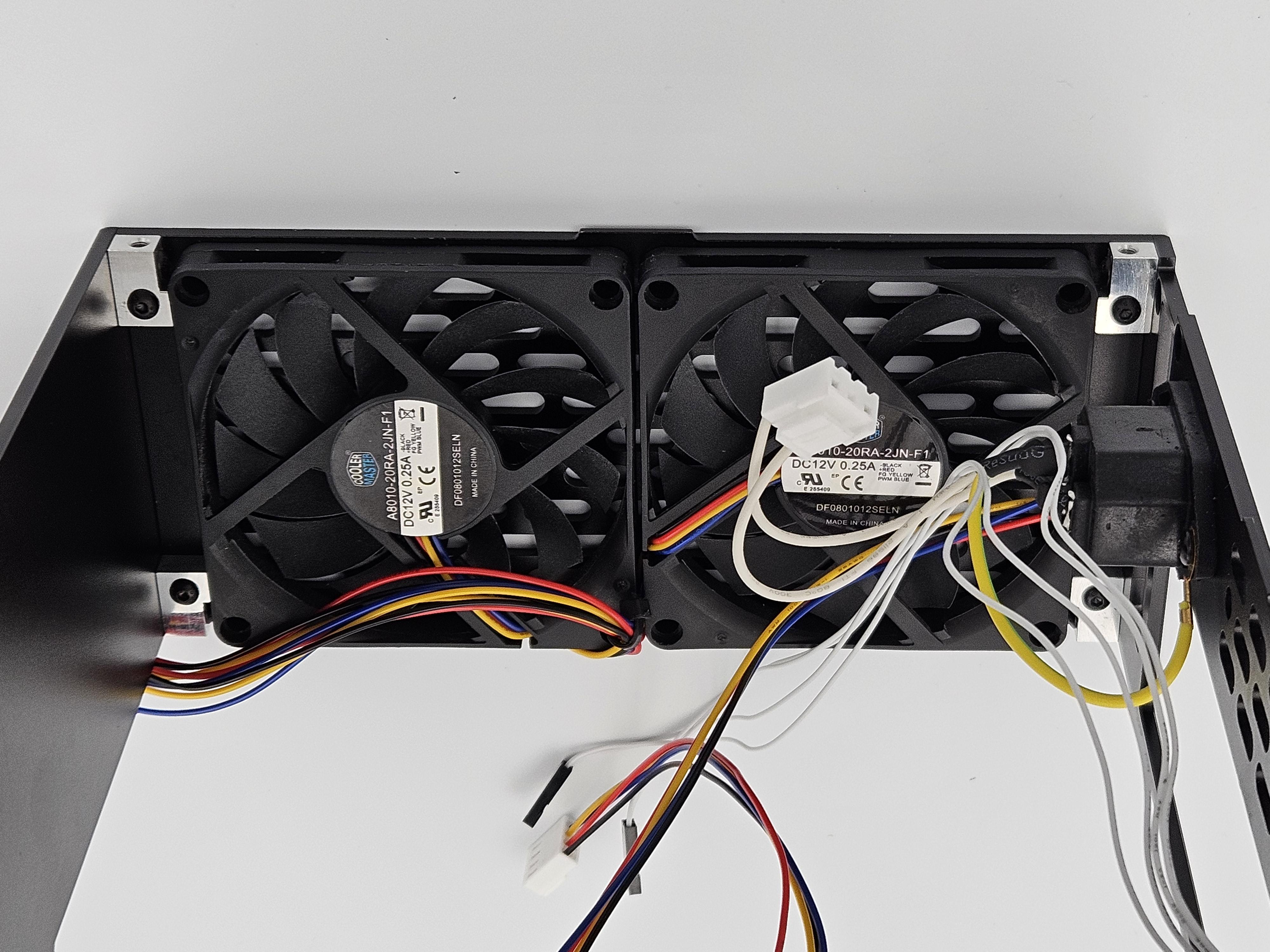 하단부에서 흡기해서 상단부에 배기하는 공기흐름을 생각하고 팬을 설치했습니다.