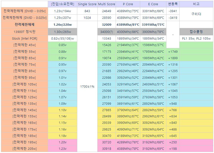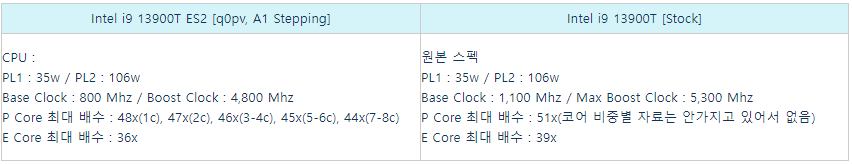Intel i9-13900T ES2(q0pv) 테스트 자료