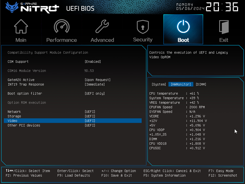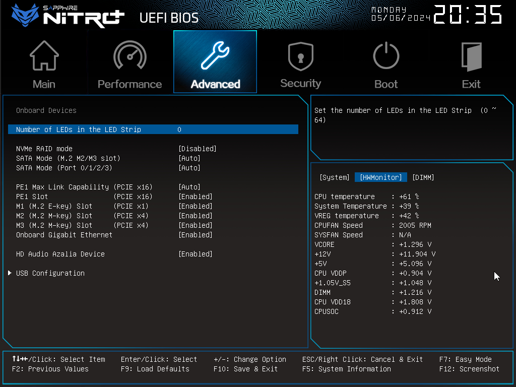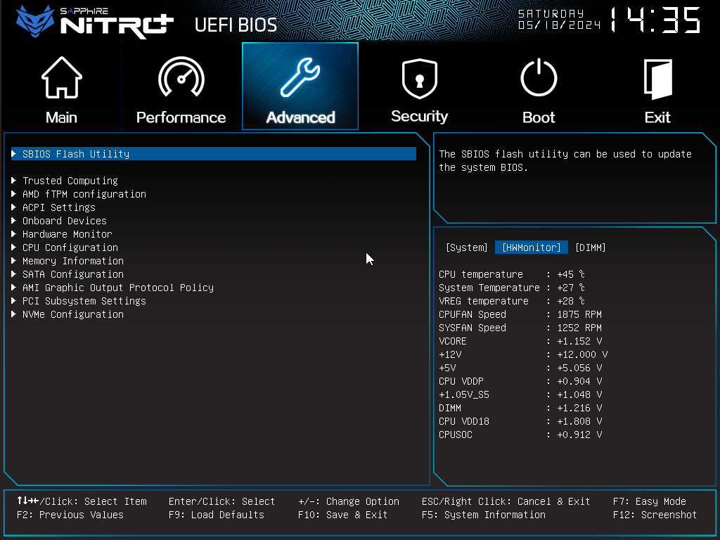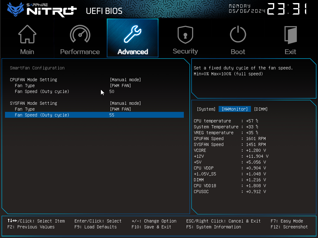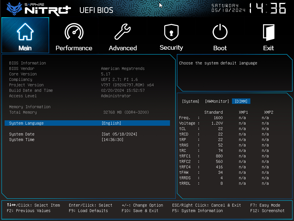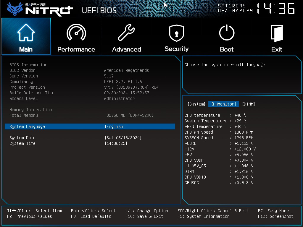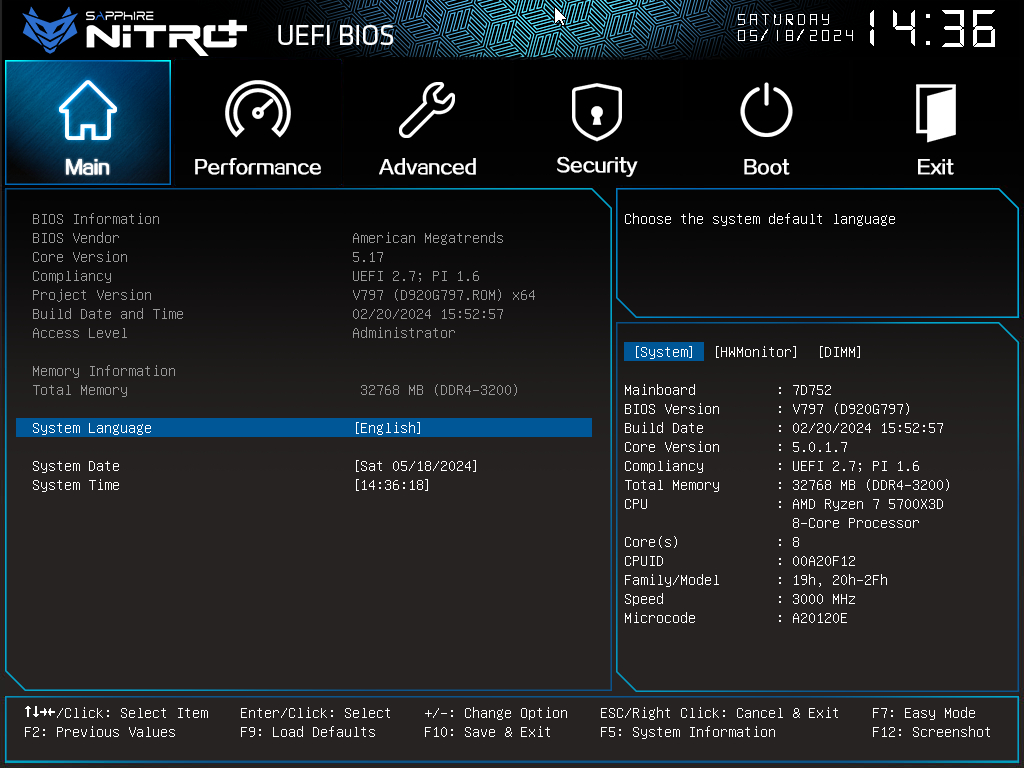 우측 하단의 탭에서 메인보드의 현재 정보를 볼수 있고, F5를 눌러 탭을 전환할 수 있습니다.