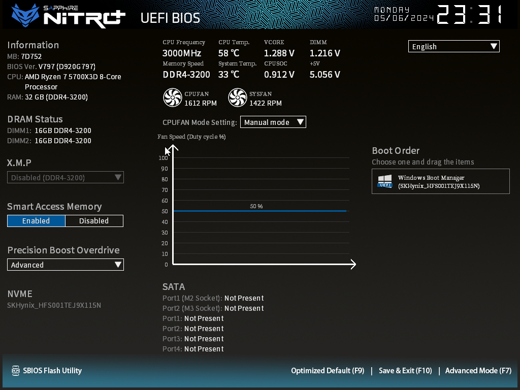 커브드 옵티마이저도 설정 가능합니다(현재 CPU는 5700X3D가 장착되어있습니다).