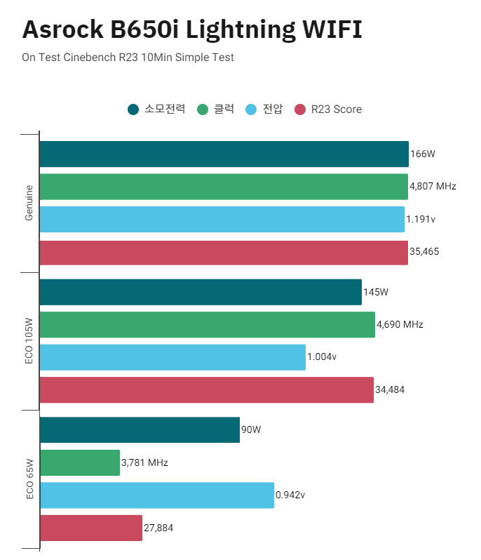 Asrock B650i Lightning 보드는 기본상태와 PBO Limit - Mainboard의 상태가 똑같이 170w로 타겟되어 있어