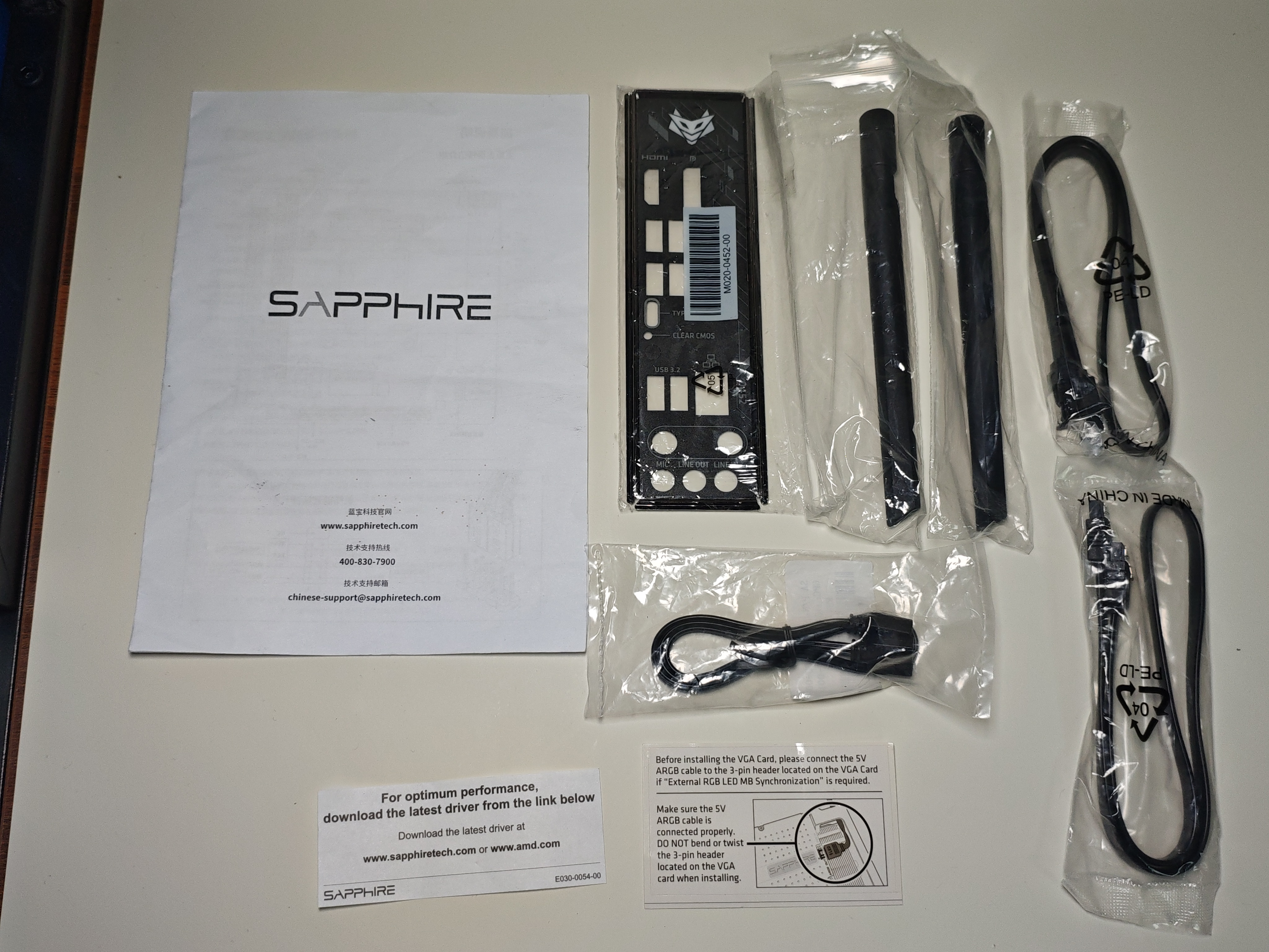 내용물은 제품 설명서, 와이파이 안테나, IO쉴드, 사타 케이블로 구성되어 있습니다.