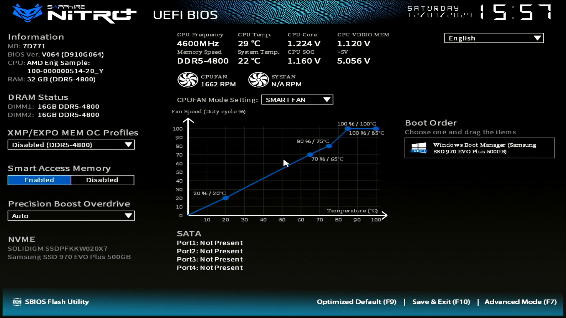 보드의 스펙만을 확인하기 위해 팬과 펌프는 Full Speed로 설정하여 테스트 하였고,