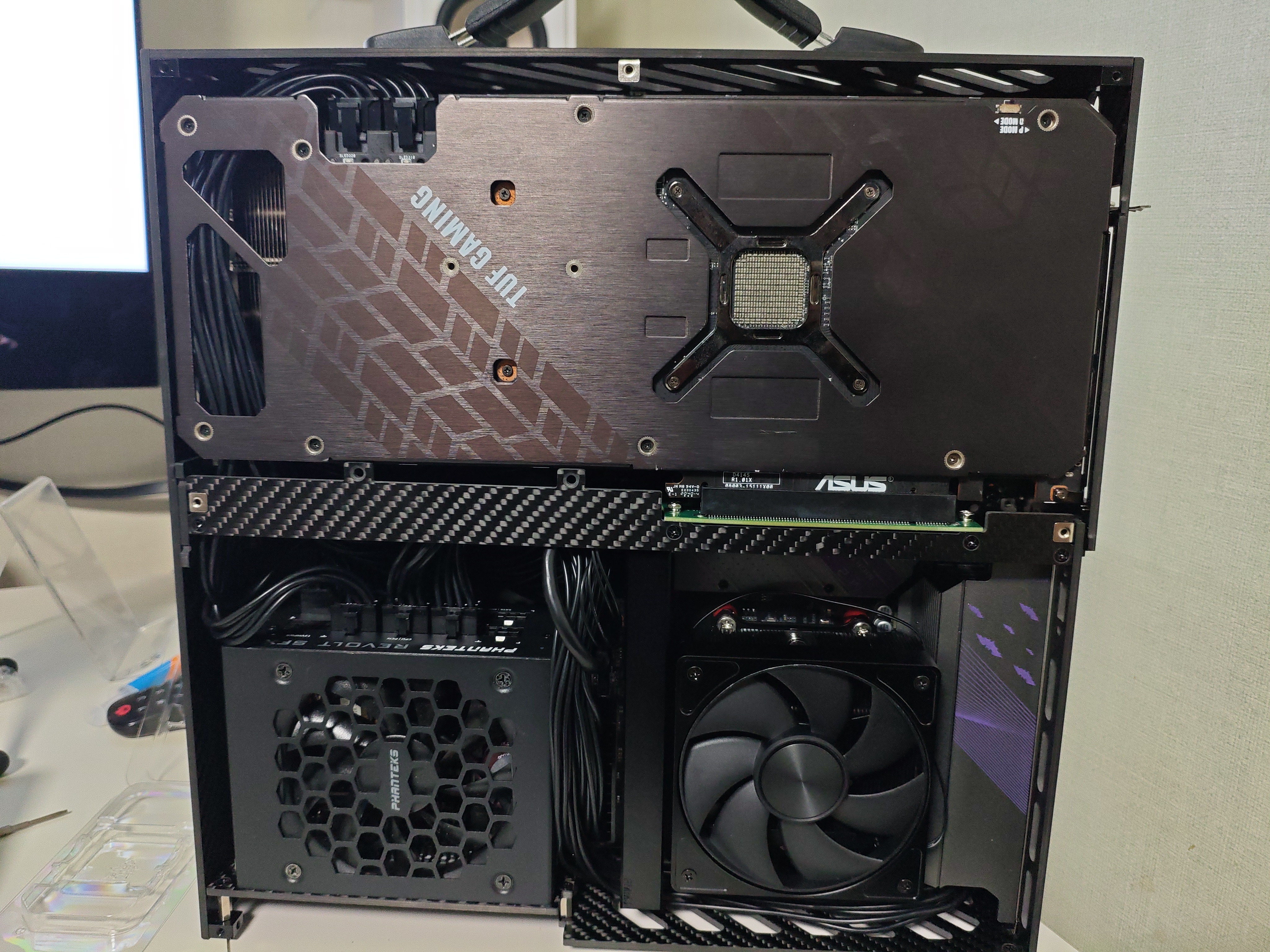 무거운 그래픽카드를 받쳐주기위해 중간 프레임으로 라이저 카드를 지지해주는 구조 입니다.
