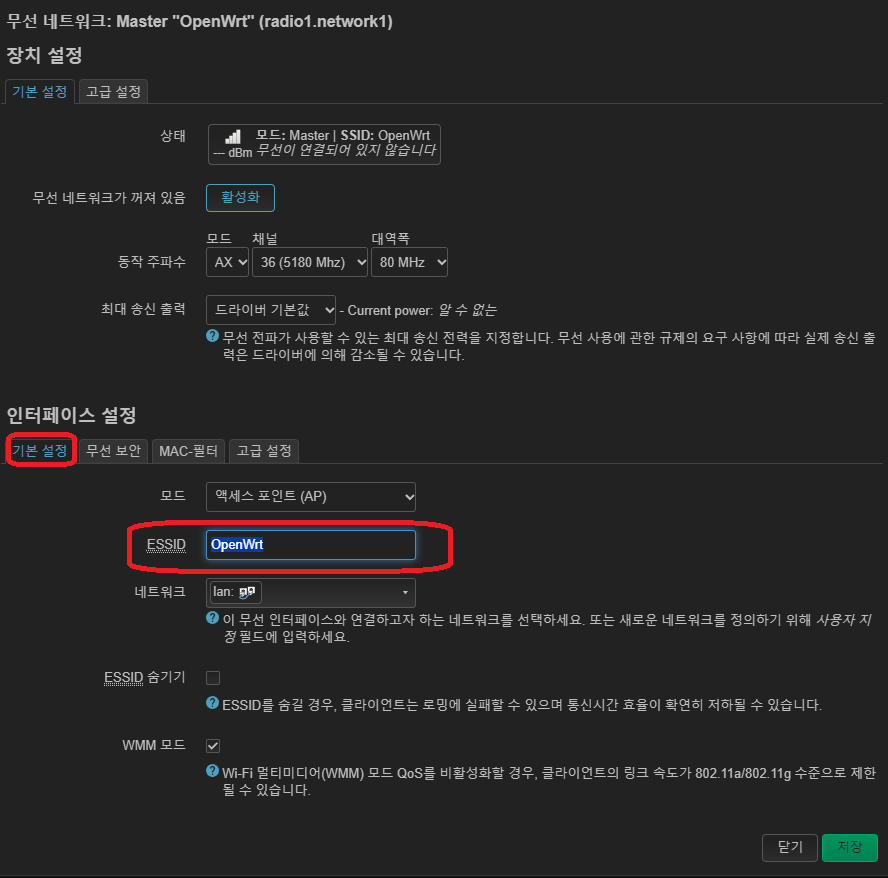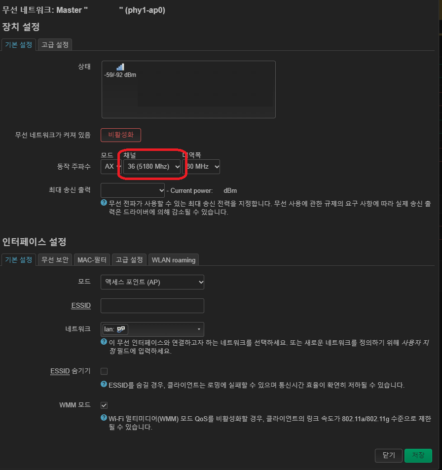 저는 5Ghz만 사용할 것이라 밑의 내용을 수정해 보겠습니다.