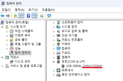 UART to USB 장치를 연결하여 COMx 포트가 무엇인지 확인 합니다.