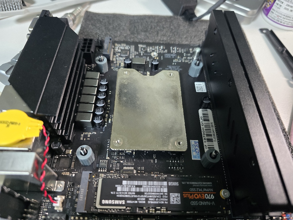 기존 방열판은 전원부 초크랑 간섭되서 장착이 안됬었는데 베이퍼 챔버 방열판은 두께가 높아져서 간섭이 없어졌습니다.